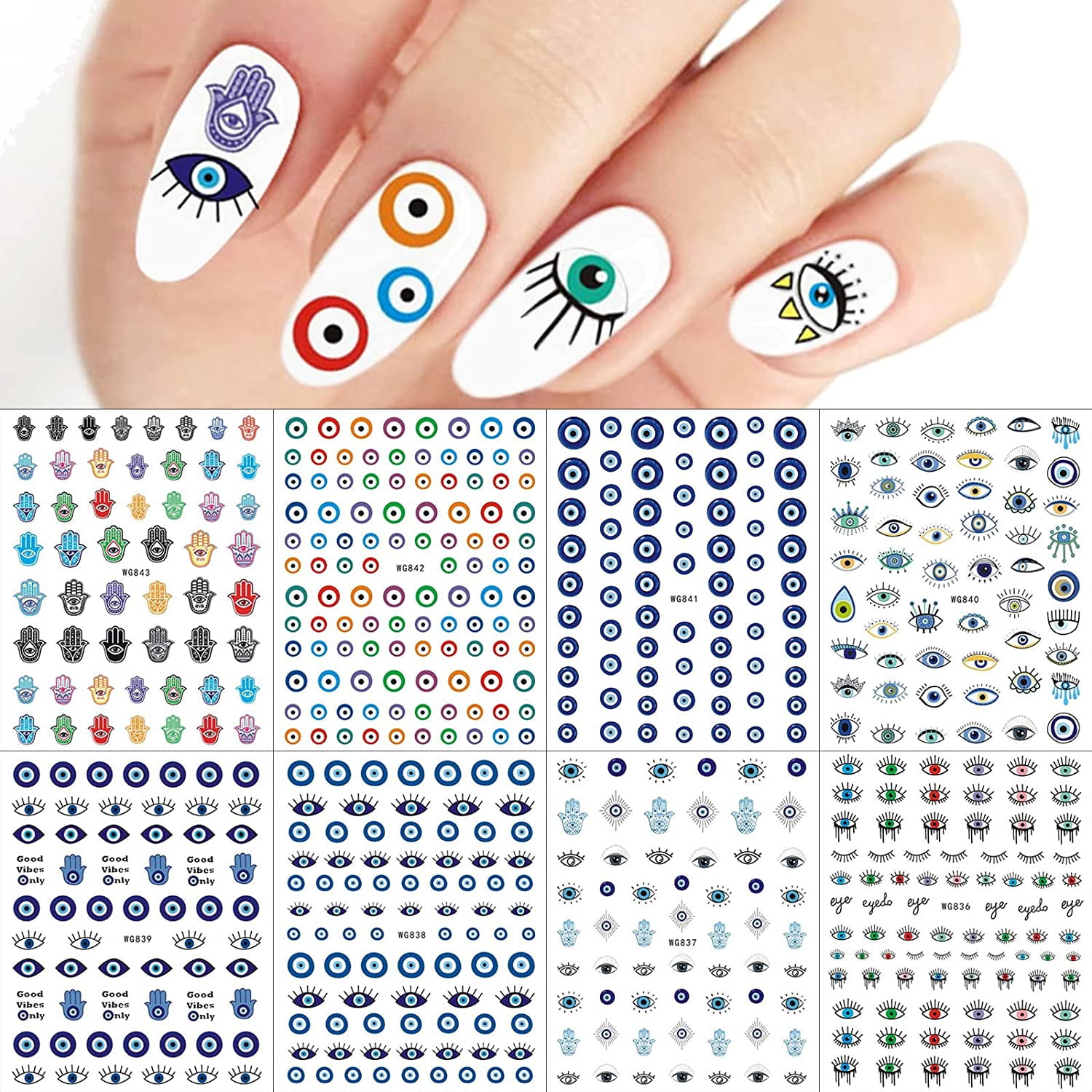 Symbolic Evil Eyes By illustratedpgh via Instagram illustratedpgh 2. Suitable for use with nail polish UV gel polish acrylic and more. Next use a round tool for your eye dots that has three sizes. 10 Sheets Evil Eye Nail Art Stickers Decals TOROKOM Cute 3D Self-Adhesive Nail Stickers Pegatinas para Uñas Blue Eye Khamsah Hand of Fatima Cartoon Frensh Nail Decals DIY Nail.